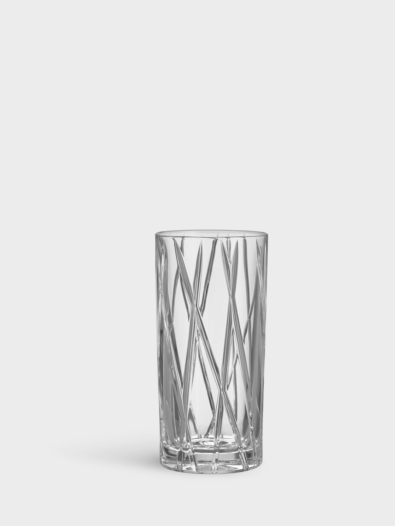 City Highball by Orrefors holds 37 cl. The glass is ideal for serving long drinks. The cuts that criss-cross the surface of the glass create an irregular look, which contributes to the distinct identity of the series. Designed by Martti Rytkönen.